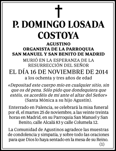 El Padre Domingo Losada ha fallecido en Palencia (Castilla y León)