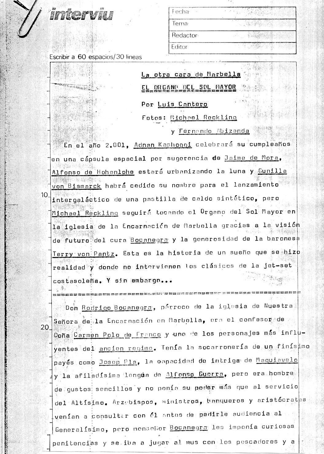 pusiera Marbella en el mapa de la vida cultural de la ciudad. Cantero, el autor del reportaje,