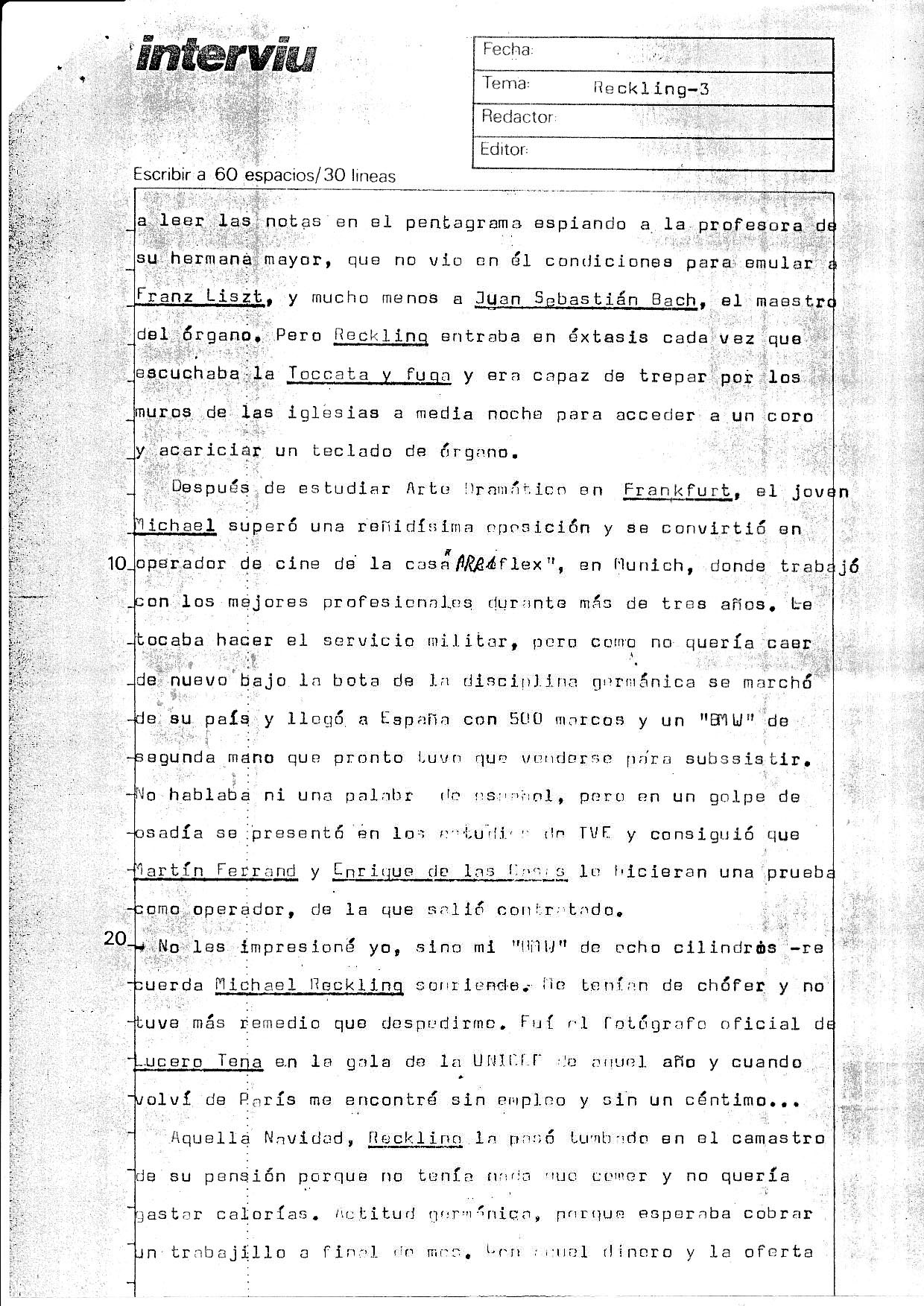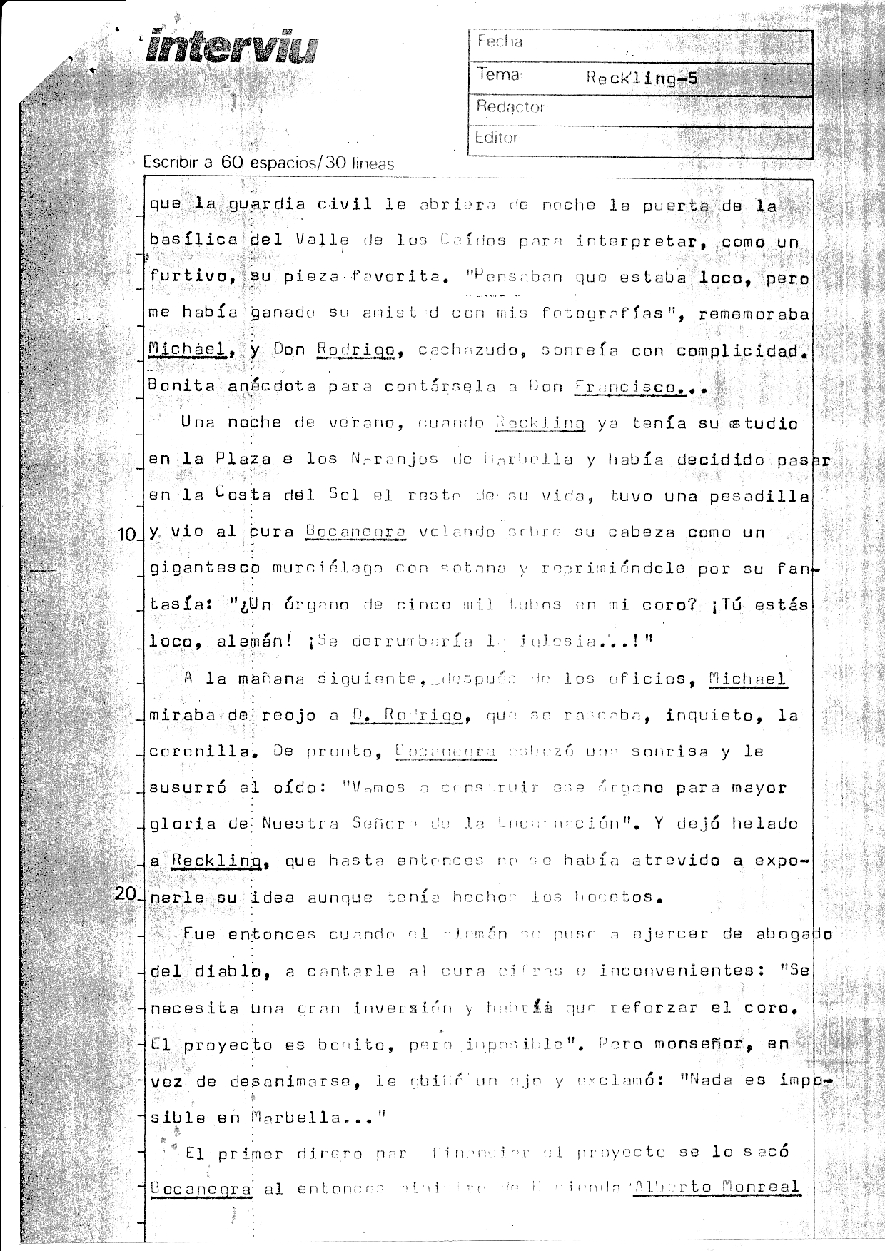 Artículo escrito en 1987 por el periodista Luis Cantero.