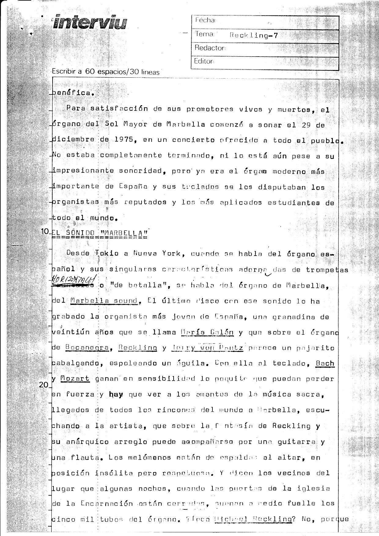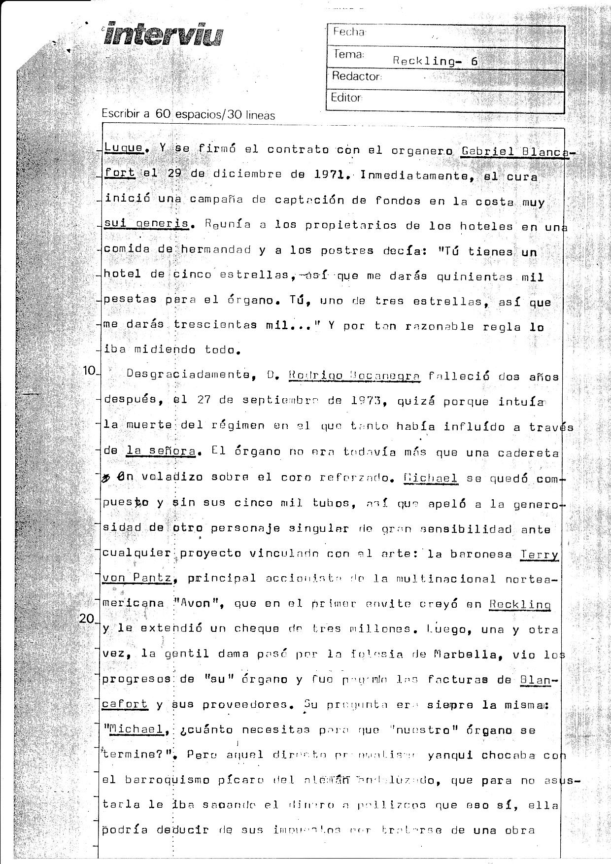 Luego, una y otra vez, la gentil dama pasó por la iglesia de Marbella, vio los progesos de "su" órgano